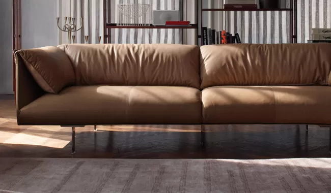 簡潔俐落的傾斜扶手設計 美麗自然的皺褶線條造型 高背、低背各有特色的一字型沙發 歡迎訂製洽詢 ▼
